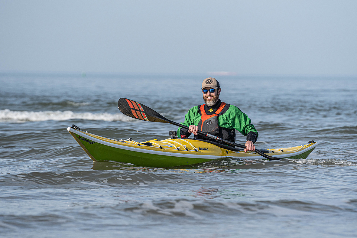 Der nächste Vergleich erfolgte auf der Nordsee. Das ganze Team Lettmann und das Team Outdoordirekt waren am Start. Leider hatten wir kaum Wellen. Bestes Sommerwetter mitten im Winter. Doch auch hier wurde schnell klar, dass man selbst bei einer leichten Brise seine Hand schnell am Skegschieber des Biskaya hat. Beim Akaroa verspürt man dieses Bedürfnis nicht. Bewegt man beide Kajaks durch kurze, knackige Wellen von vorne, spürt man schnell das Mehr an Volumen im Bug des Akaroa. Das Kajak läuft deutlich trockener als der Biskaya, was kein Wunder ist. Vergleicht man beide Boote an Land, sticht die hohe Nase des Akaroa sofort ins Auge. Auch im Surf taucht der Akaroa später ab, was in der Welle für mehr Dynamik und ein leichteres Umkanten sorgt.