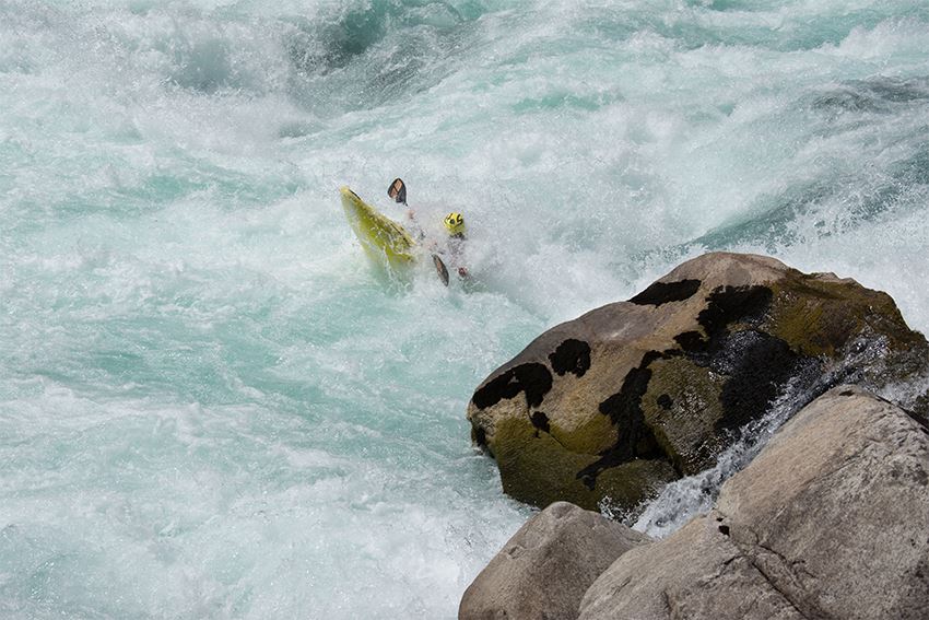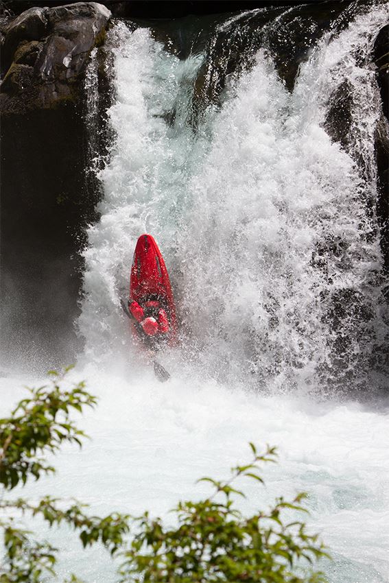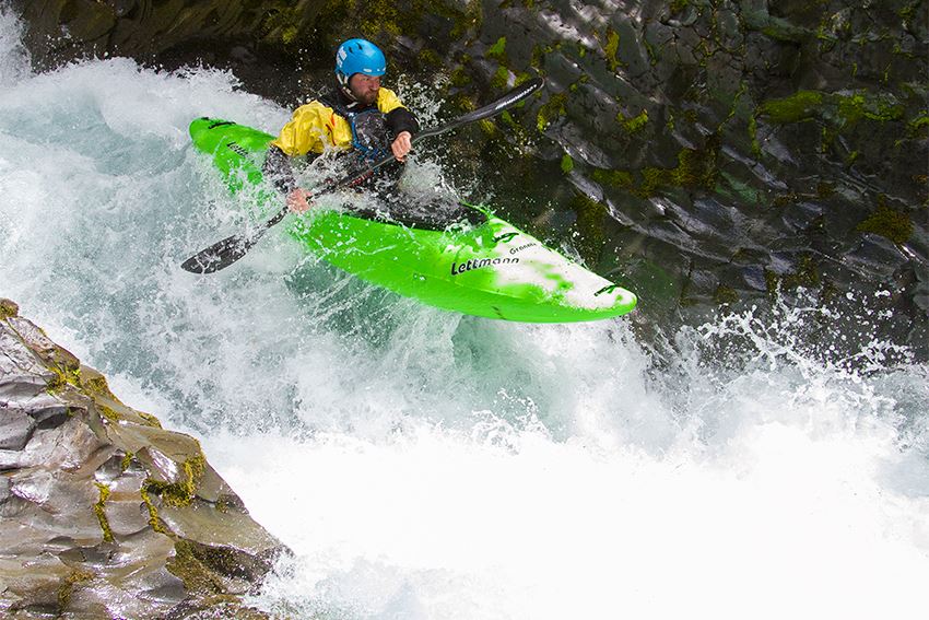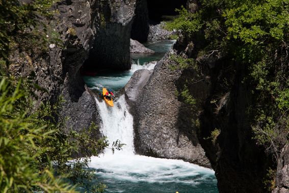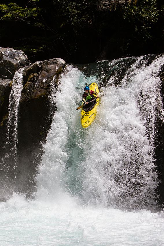 Der höchste Fall des oberen Palquin hat schon diverse Befahrungs-Varianten gesehen. Alles ist möglich, nichts muss. Wer sich für´s flache Landen nach ordentlichem Boof entscheidet, sollte allerdings die Vorlage wahren, der Aufprall ist hart.