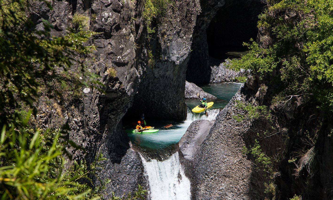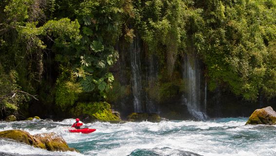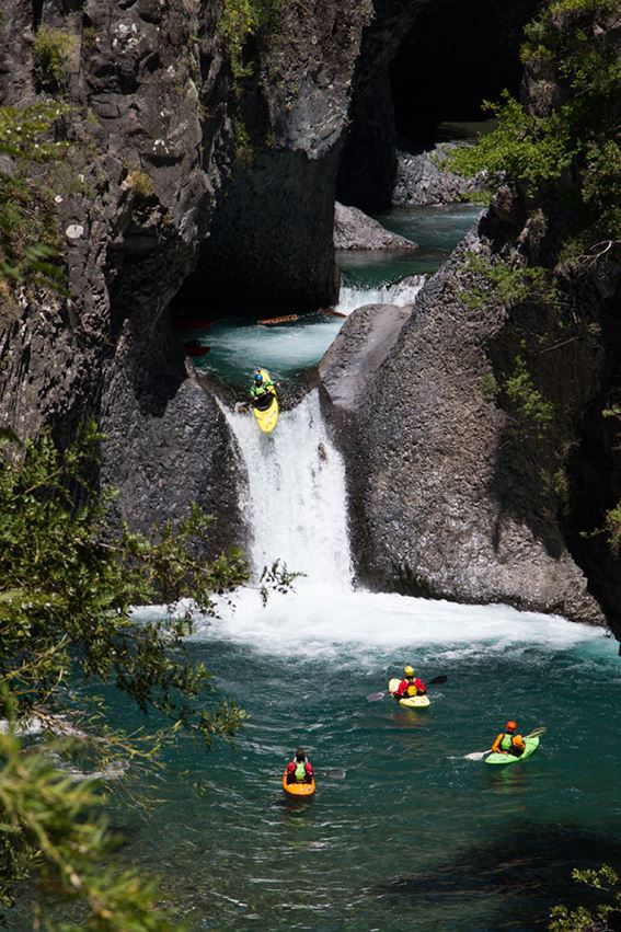 Weicher als die geboofte Landung am Palquin ist der Run auf dem unteren Fuy (je nach Wasserstand WW-III bis IV). Unübertoffen ist dieser Parade-Fluss allerdings im Oberlauf. Nachdem uns der Fuy auf traumhaften Wildwasser im oberen vierten Grad schmeichelt, setzt er mit dem Salto de Leones dem ganzen die Krone auf. Mehrere Stufen und ein ca. sieben Meter hoher Wasserfall bilden das Highlighgt der Fuy-Befahrung.