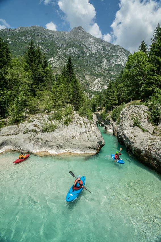 Die Soca in Slowenien ist einer der beliebtesten Flüsse für Wildwasser-Fahrer in Europa. Grund dafür ist nicht nur das glasklare Wasser der Soca. Sie bietet zudem Wildwasser in jedem Schwierigkeitsgrad - für Einsteiger leicht fließendes Genuss-Wildwasser mit grandioser Fernsicht auf die umliegenden Berge, für Profis atemberaubendes Wildwasser in schweren Schluchten.