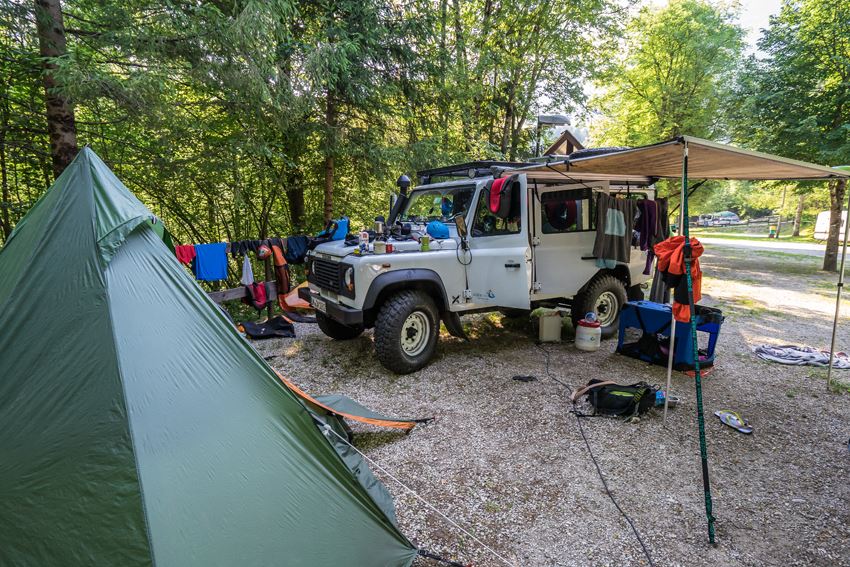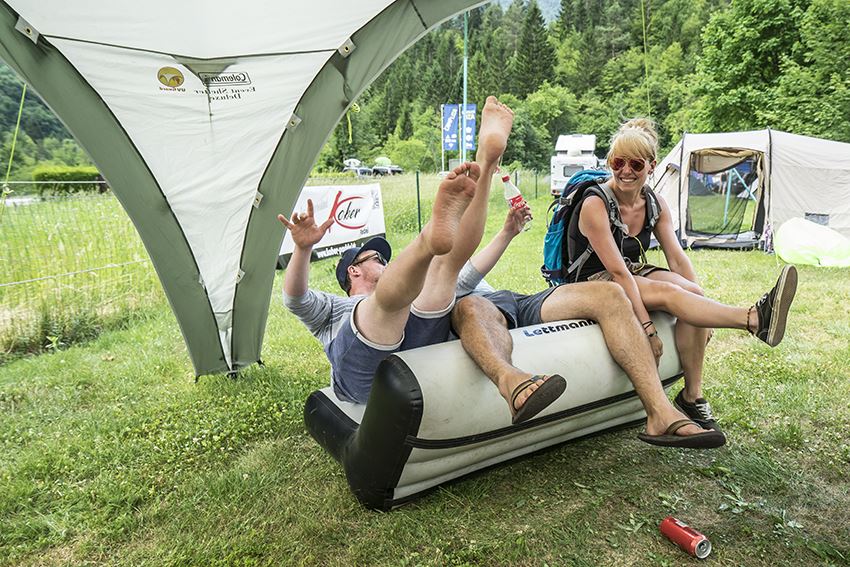 (Bilder oben: Campen, Radfahren, Sonnenbaden. Alles ist möglich an der Soca)
