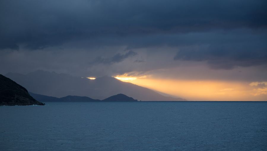 Bild: Doch dann klart das Wetter auf. Wir genießen die letzten Sonnenstrahlen des Tages. Als die Sonne unter geht, haben wir die komplette Ostküste im Sack.
