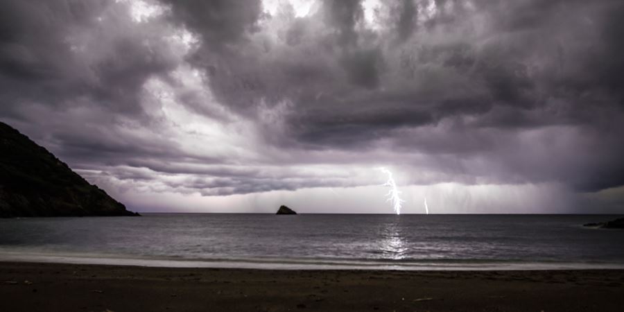 Bild: Dann nimmt das Unwetter wieder seinen Lauf. Gott sei Dank sitzen wir da schon am Strand und genießen die Aussicht auf das tosende Meer.