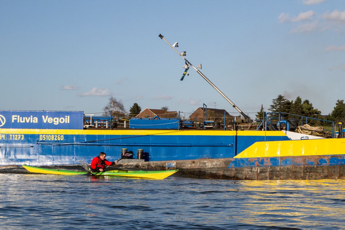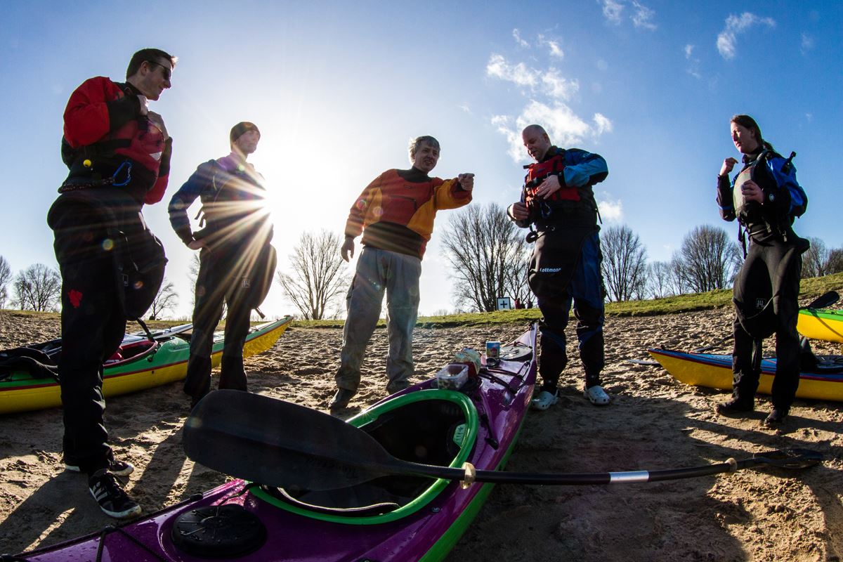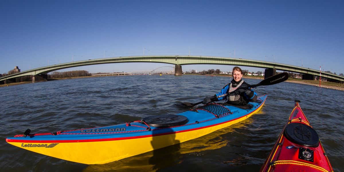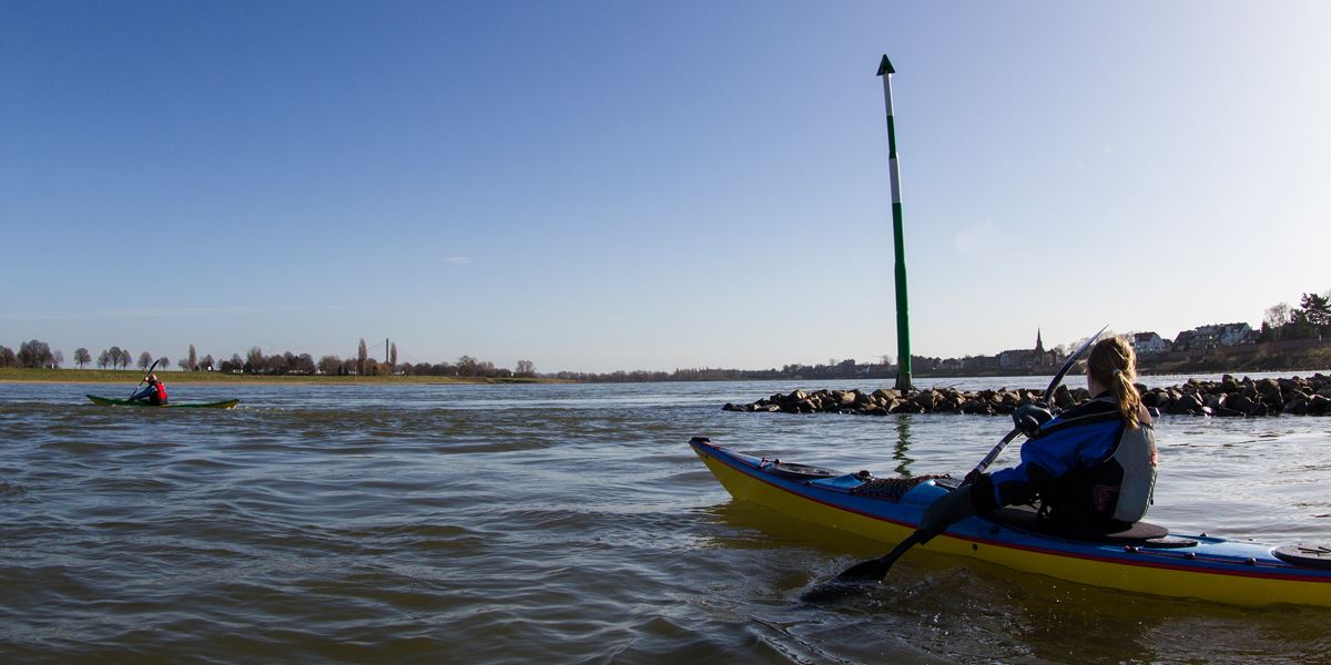 Bild: Wer sich auf den Rhein begibt, der sollte sich mit den Grundlagen der Ströhmungslehre auskennen. Kehrwasserfahren ist eine Grundvoraussetzung wenn man sicher unterwegs sein möchte. Lernen kann man die Basics des Rheinpaddelns in den Kursen der Lettmann-Kanuschule