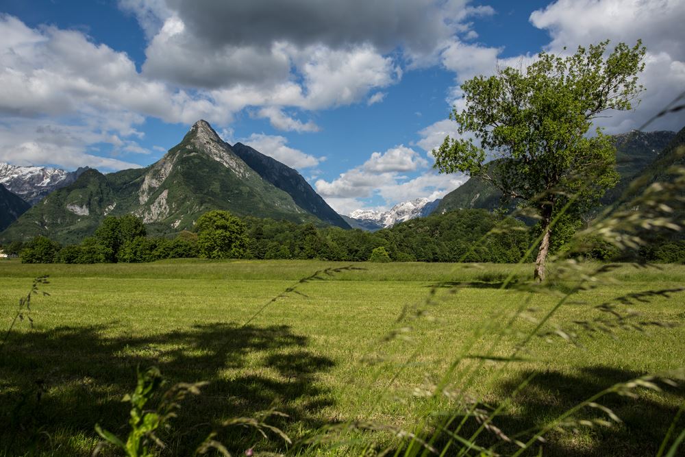 Bild: Der Himmel lacht über dem Hausberg von Bovec, dem Swinjak.