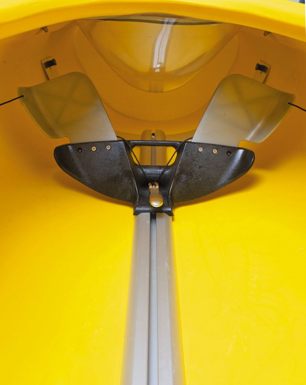 Der Pinnensteuerbock umfasst dank des Designs den ganzen Fuß und bietet Druckpunkte für Ferse und Ballen. Für ehemalige Rennsportler macht dieser Steuerbock unsere Marathon Kajaks zu besonders geeigneten Trainingsbooten für die Feierabend-Runde.