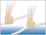 Wie man anhand der Zeichnung unschwer erkennen kann, wird bei einem Lettmann Ergonomschaft die Hand nicht in eine unnatürliche Griffposition gezwängt. Durch die geringere Verdrehung des Handgelenkes werden der Knochen- und Bandapparat des Handgelenks und des Unterarms weniger belastet.