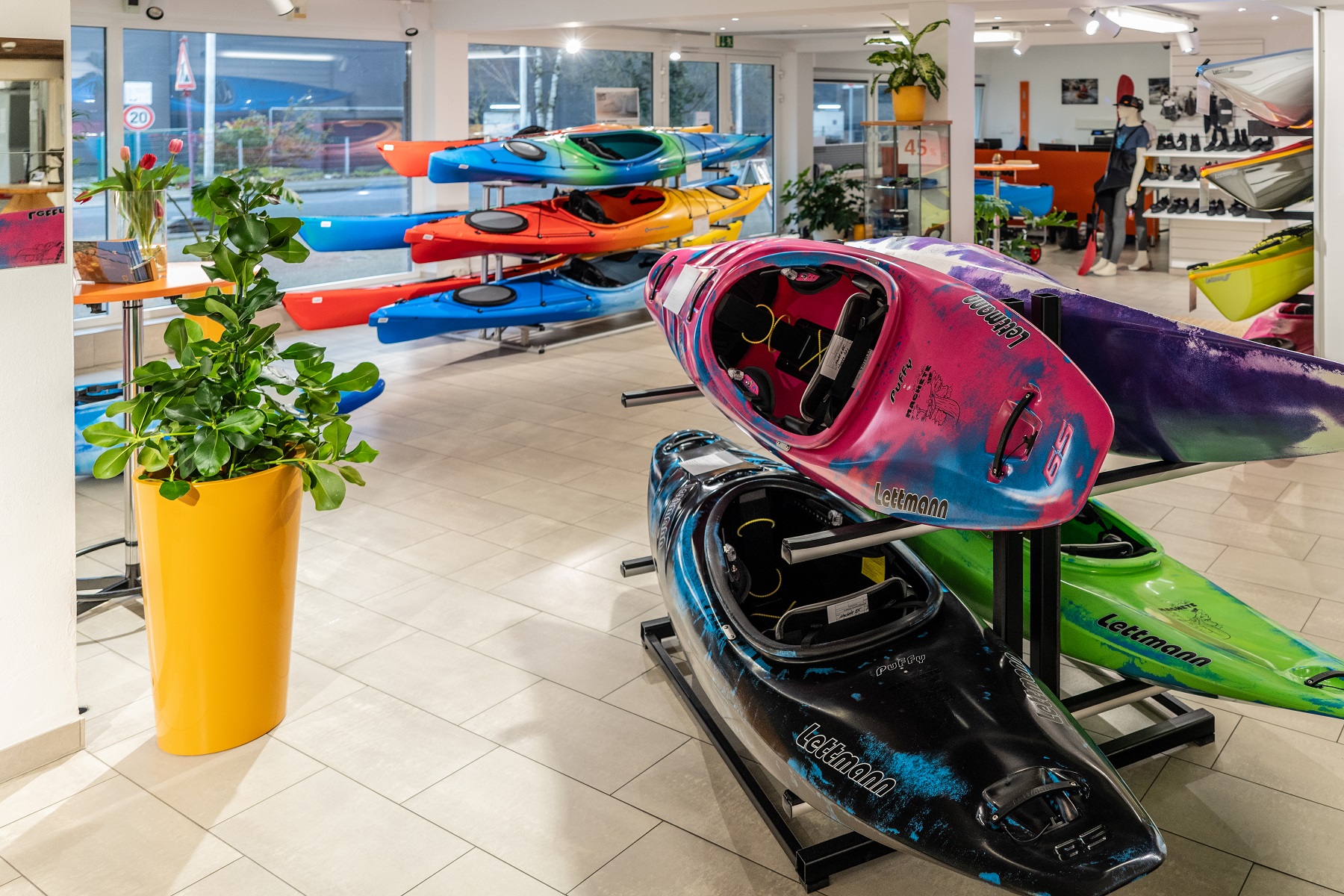 Bei uns in Moers findest du nicht nur unsere Produktion, sondern auch unsere große Ausstellung mit Booten und Paddeln. Schau doch mal rein!